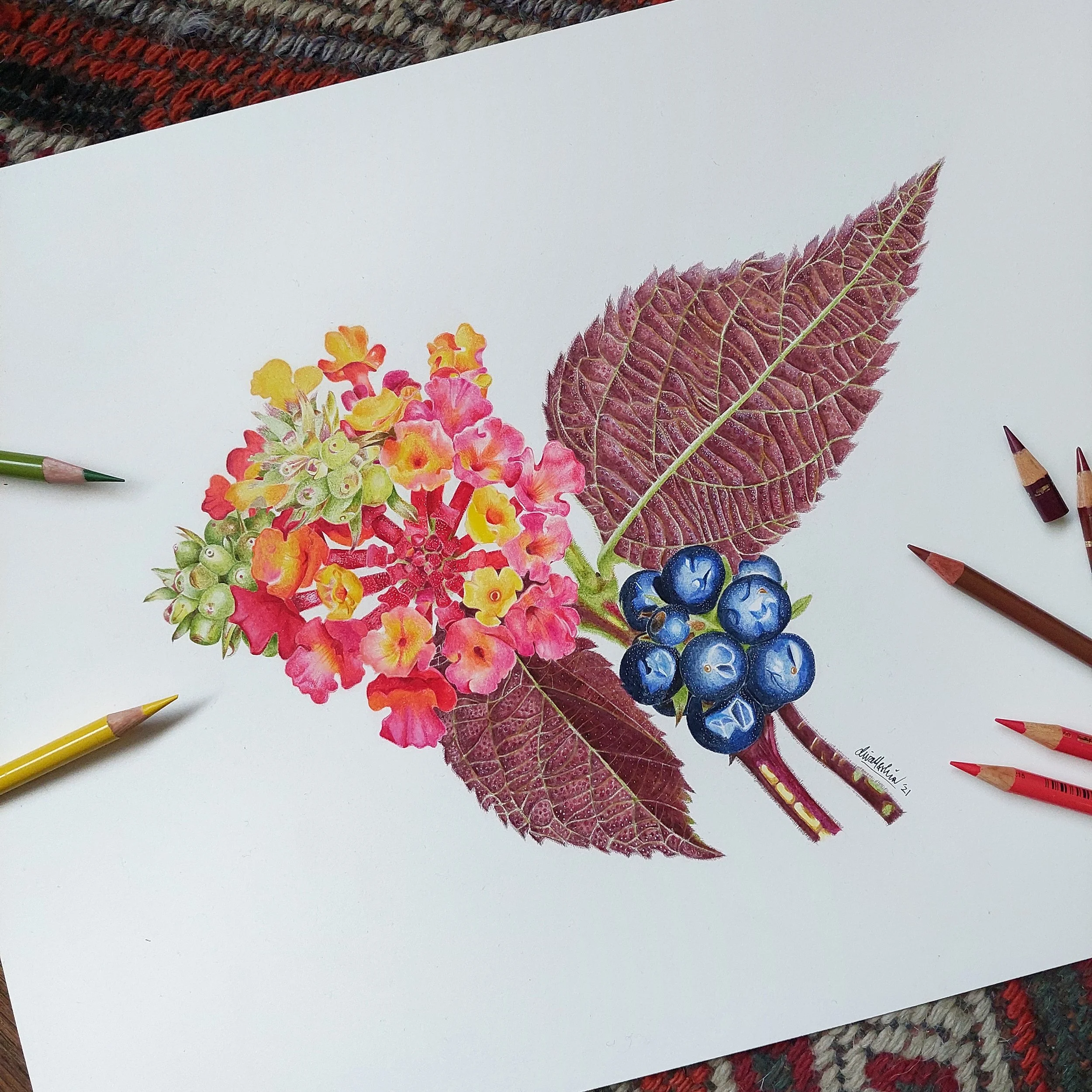 Slide 1 Slide 1 (current slide) Slide 2 Slide 2 (current slide) Slide 3 Slide 3 (current slide) Slide 4 Slide 4 (current slide) Lantana camaraColored pencil on hot pressed paper.29.7 x 42 cm. You are strong, you are loved